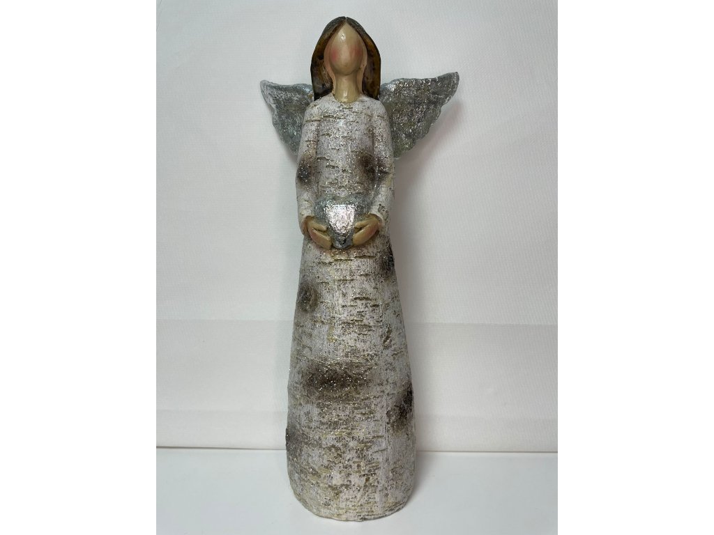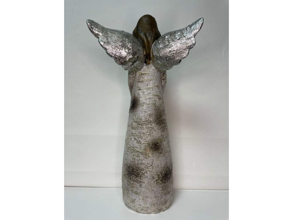 Elegantní dekorativní anděl v přírodním stylu, inspirovaný vzhledem březového dřeva. Jemná kresba a světlé tóny dodávají figurce lehkost a harmonii, díky čemuž krásně zapadne do moderního i tradičního interiéru.