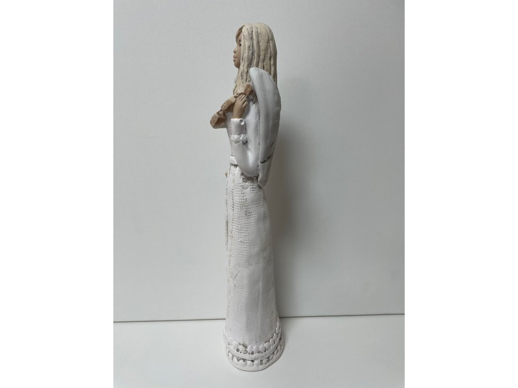 Vysoký anděl s houslemi o výšce 36 cm vyzařuje klid, soustředění a jemnou eleganci. Vyrobený ze sádry, s propracovanými detaily a decentním malováním, je ideální jako stylová dekorace do interiéru nebo dárek pro milovníky hudby a harmonie. Symbolizuje krásu tónů i andělskou ochranu.