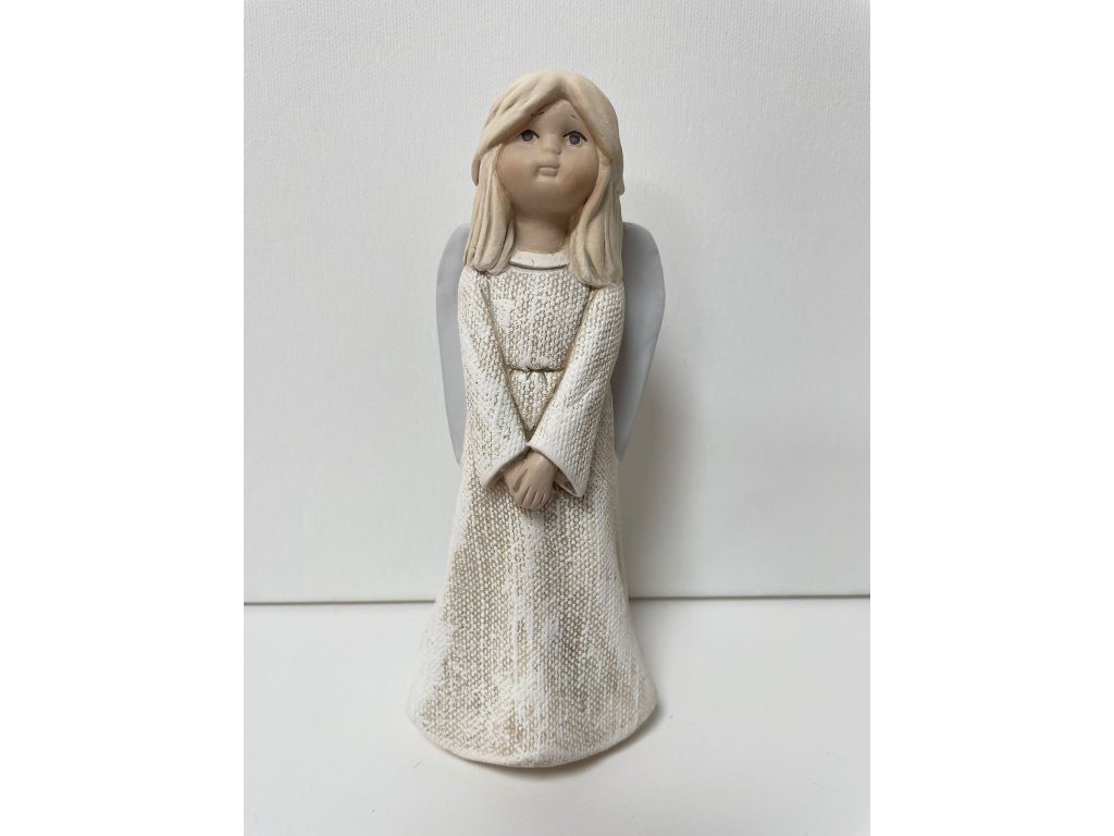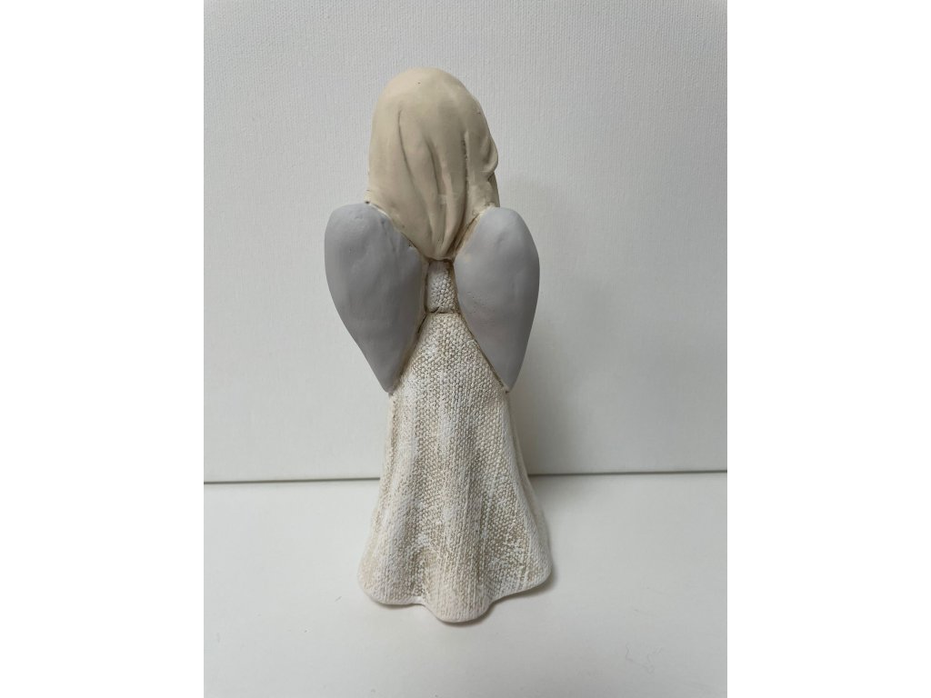 Jemný andílek ve tvaru panenky s ručkama položenýma přes sebe, který vyzařuje klid, něhu a laskavost. Jeho tichý půvab a milý výraz z něj dělají krásnou dekoraci, která přinese do domova pocit pohody a ochrany.