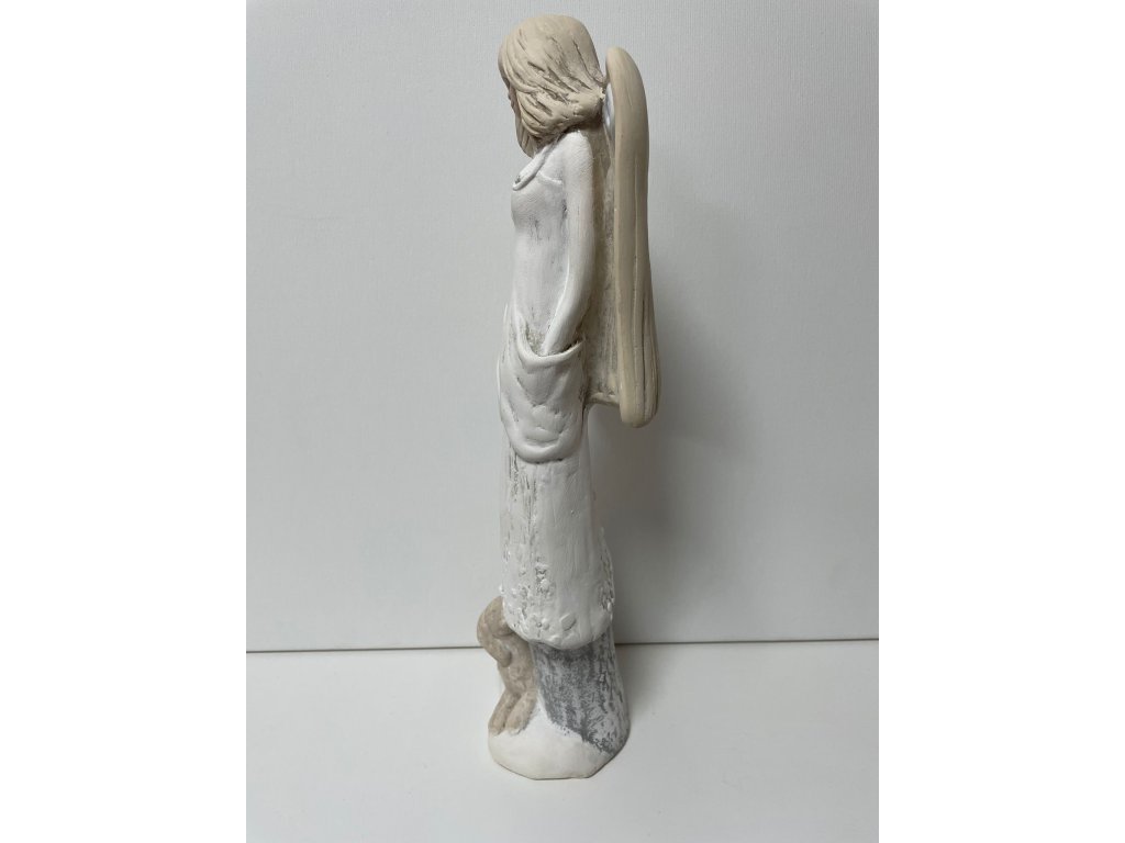 Krásná dekorace, která zahřeje u srdce – něžný andílek s malým pejskem u nohou symbolizuje přátelství, věrnost a lásku ke zvířatům. Jemné detaily a klidný výraz andílka dodávají celé postavičce harmonii a půvab.