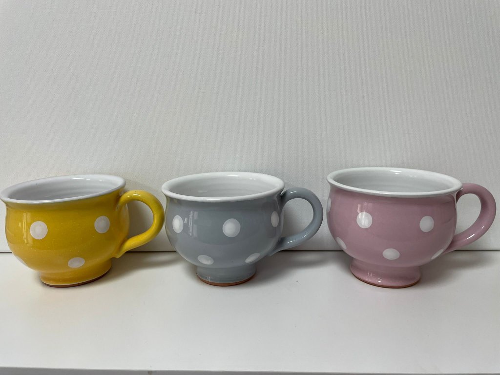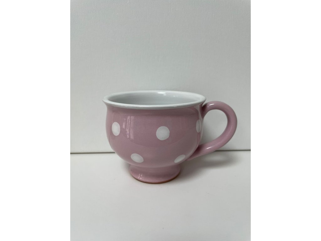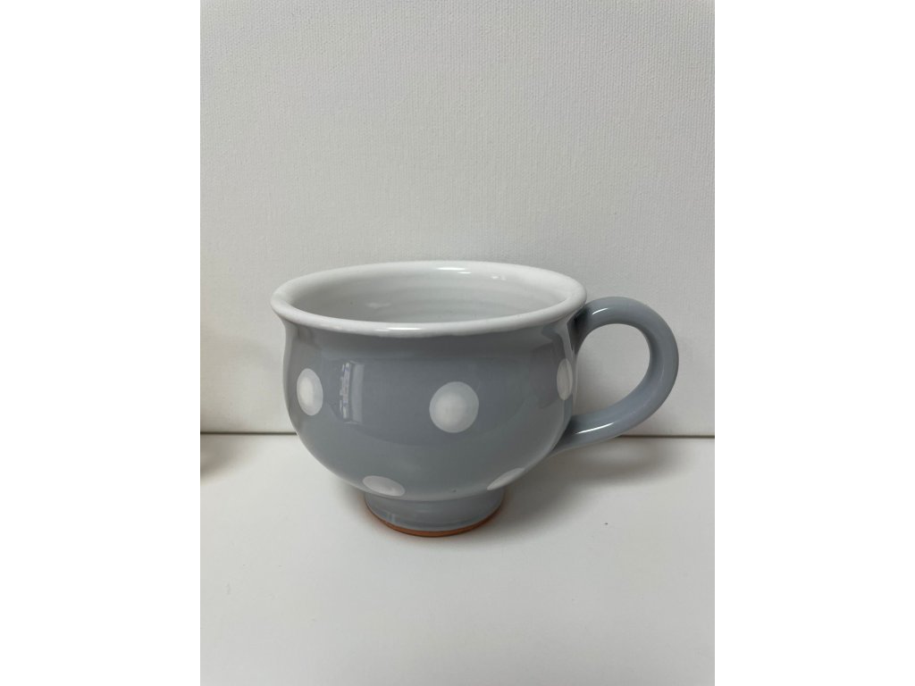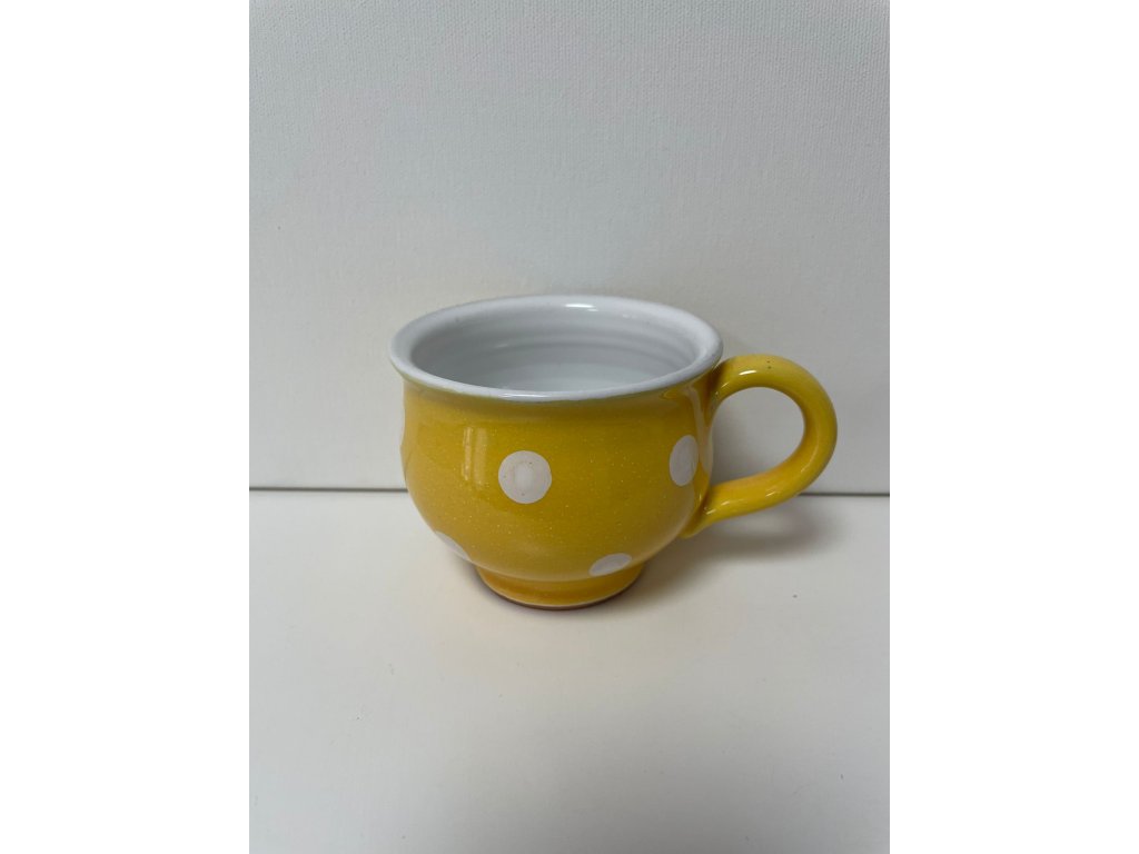 Půvabný ručně točený hrneček na hrnčířském kruhu, který si zamilujete pro jeho buclatý tvar a veselý puntíkový dekor. Každý kousek je originál – jemné rozdíly v tvaru či barvě dodávají hrnečkům jedinečný charakter a kouzlo poctivé ruční práce.