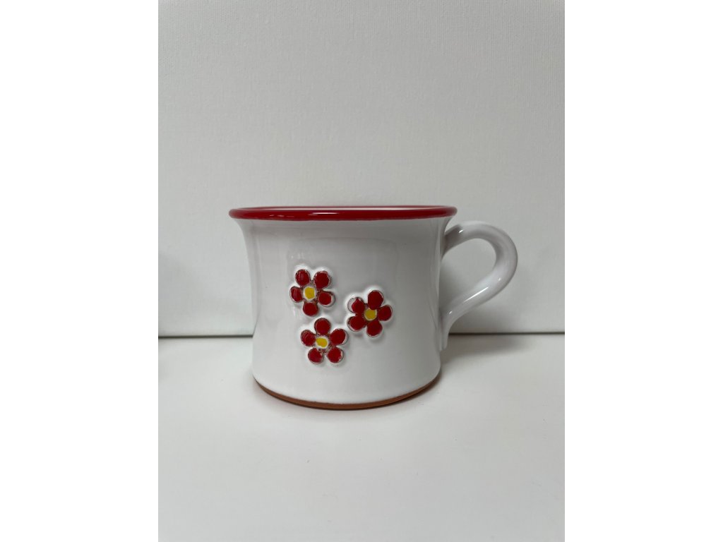Kouzelný ručně točený hrneček na hrnčířském kruhu, který zaujme jemným květinovým dekorem a poctivým řemeslným zpracováním. Každý kus je originál – vytvořený s láskou, takže se může nepatrně lišit tvarem či odstínem, což mu dodává jedinečné kouzlo ruční práce.