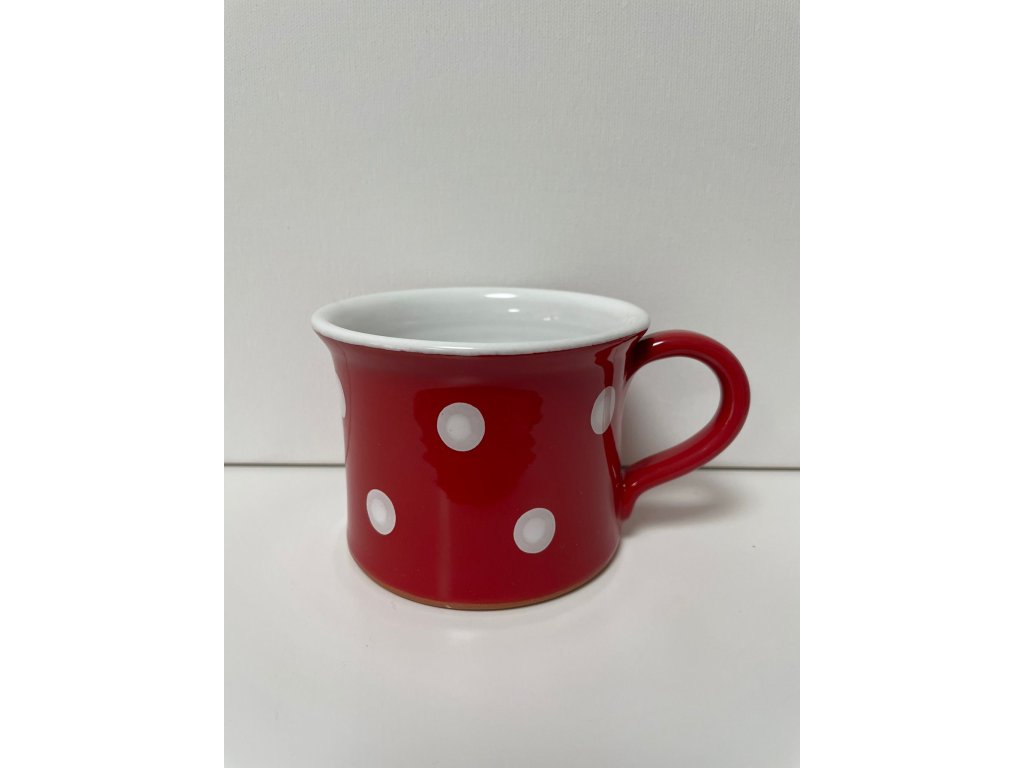 Veselý ručně točený hrneček na hrnčířském kruhu, který rozzáří každý den svým hravým puntíkovaným dekorem. Každý hrneček je originál – pečlivě vytvořený rukama zkušeného hrnčíře, a proto se může drobně lišit tvarem či odstínem. Tyto malé rozdíly dodávají každému kusu osobité kouzlo a jedinečnost.