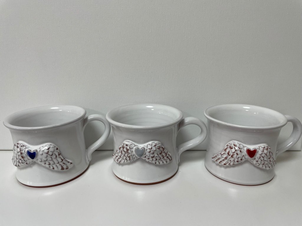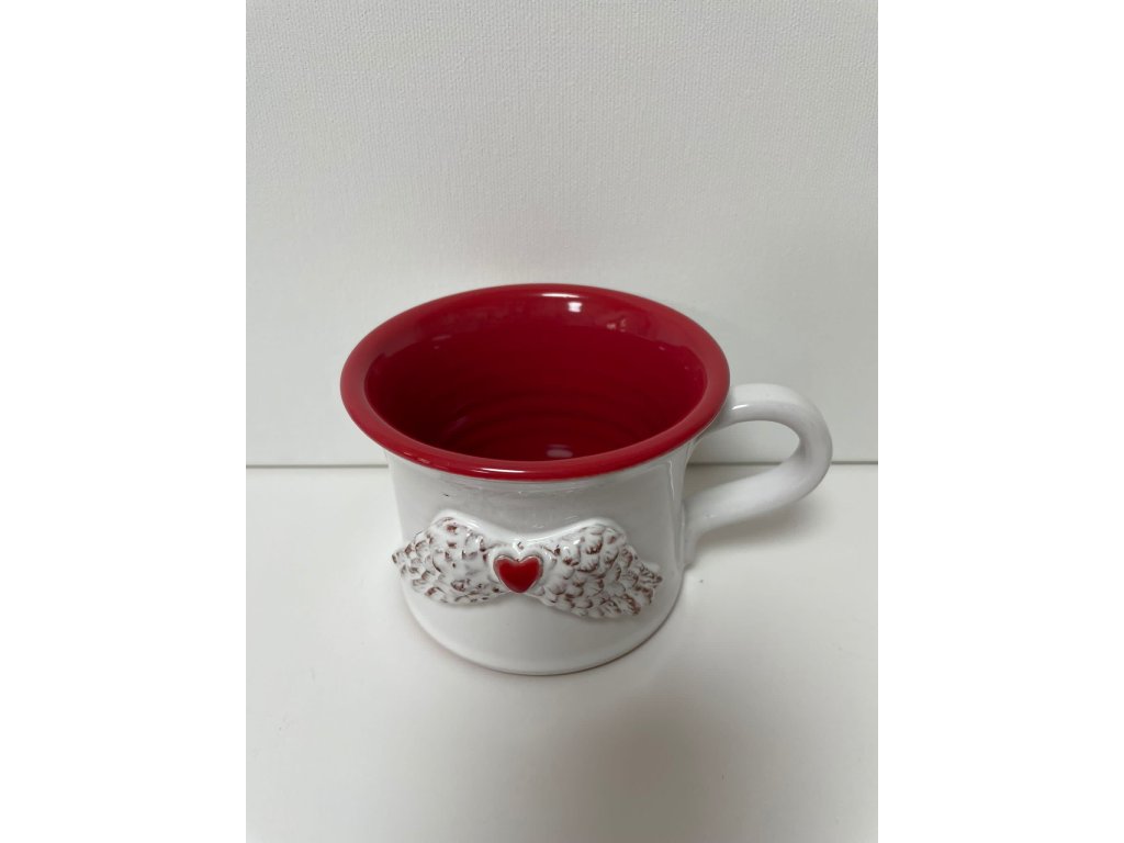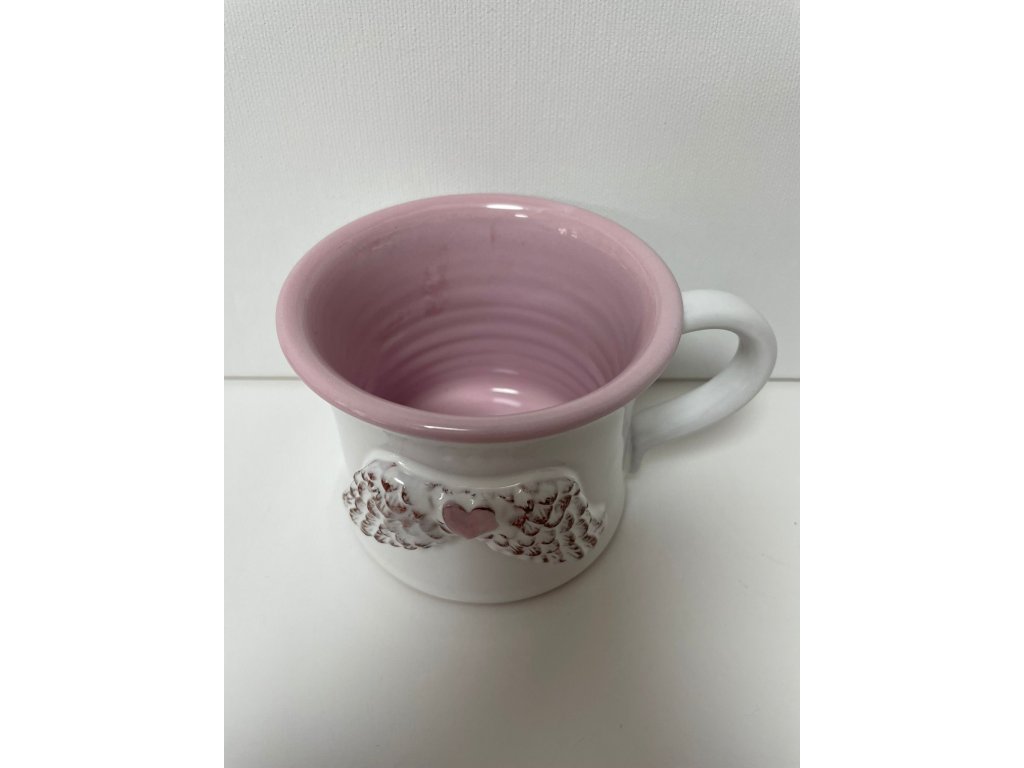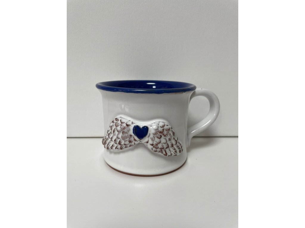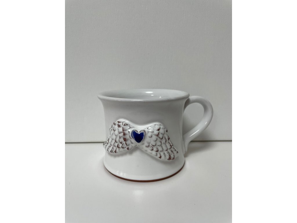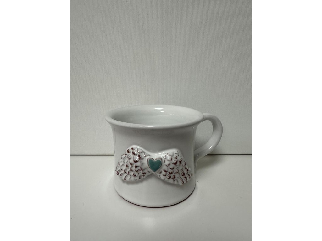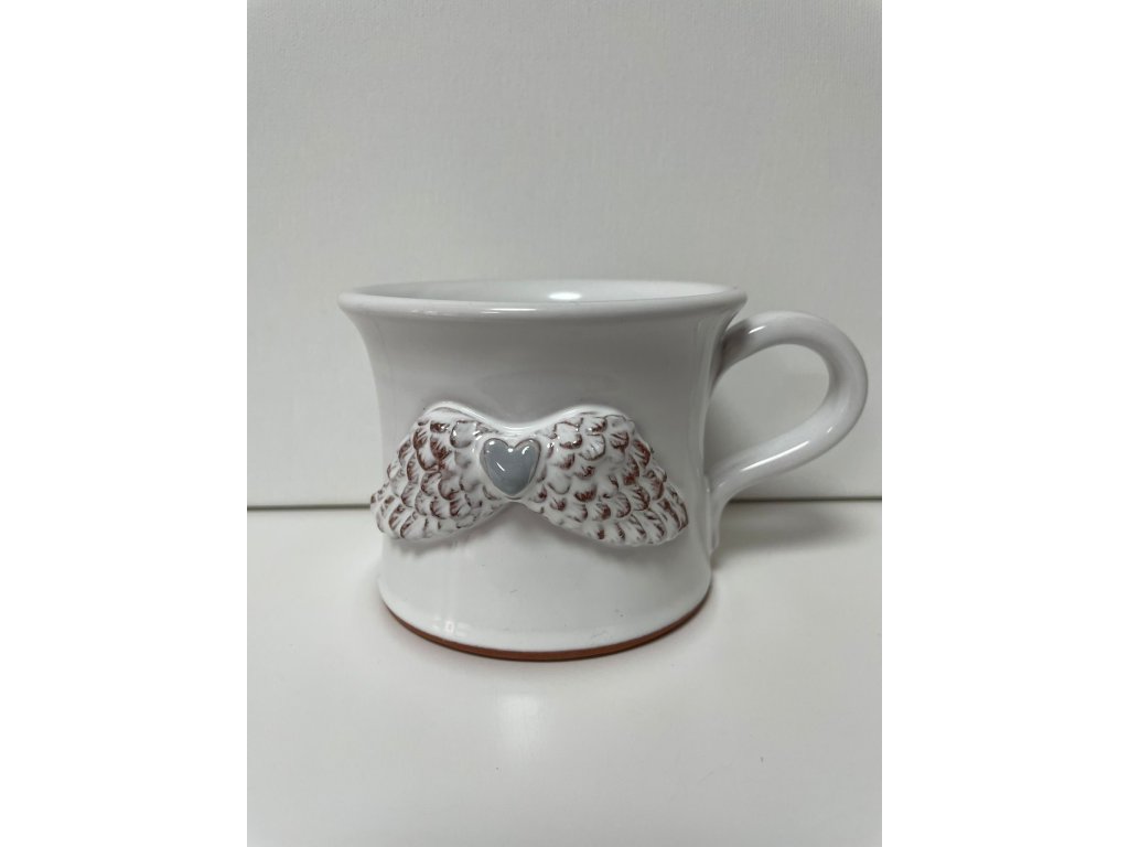 Jedinečný ručně točený hrneček na hrnčířském kruhu, který zaujme originálním 3D motivem andělských křídel. Každý hrneček je pečlivě vyráběn ručně, a proto je každý kus naprostým originálem s jemnými odlišnostmi v barvě i tvaru.