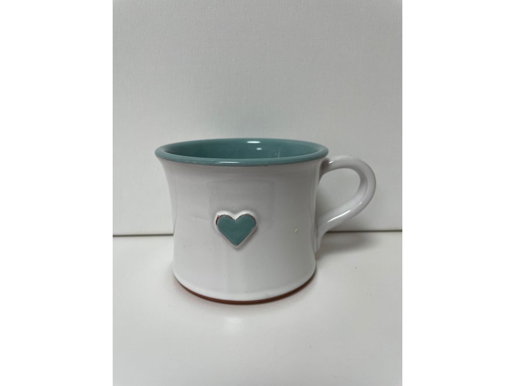 Ručně točený hrneček na hrnčířském kruhu, který potěší svým jednoduchým, ale dojemným motivem srdíčka. Každý kus je pečlivě vyrobený s láskou a nese drobné odlišnosti v barvě či tvaru, díky nimž je každý hrneček naprostým originálem.
