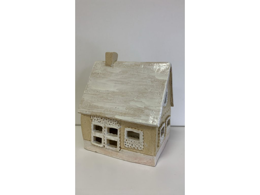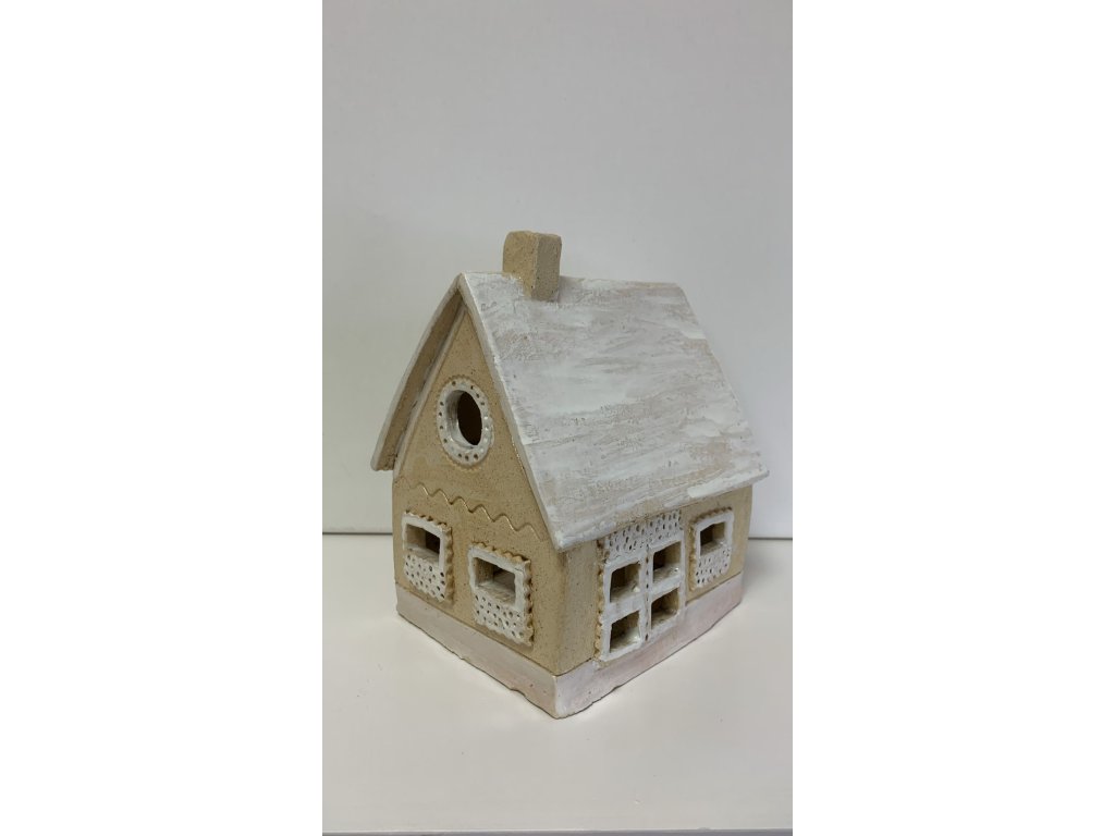 Keramický domeček s bílou střechou na čajovou svíčku – 15 cm