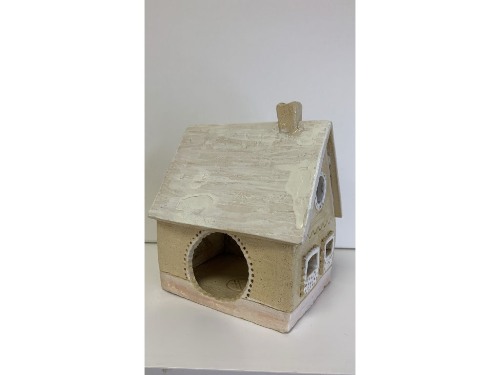 🏡 Keramický domeček s bílou střechou na čajovou svíčku – 15 cm