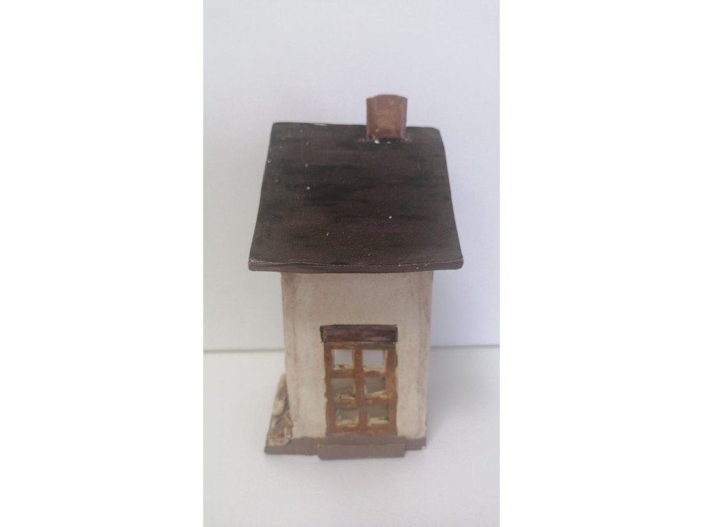 Keramický domeček s hnědou střechou 16 cm