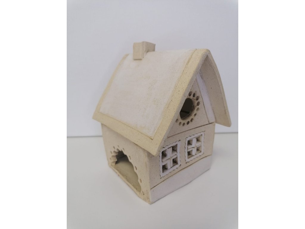 Kouzelný domeček z vypálené keramiky, do kterého lze vložit čajovou svíčku.