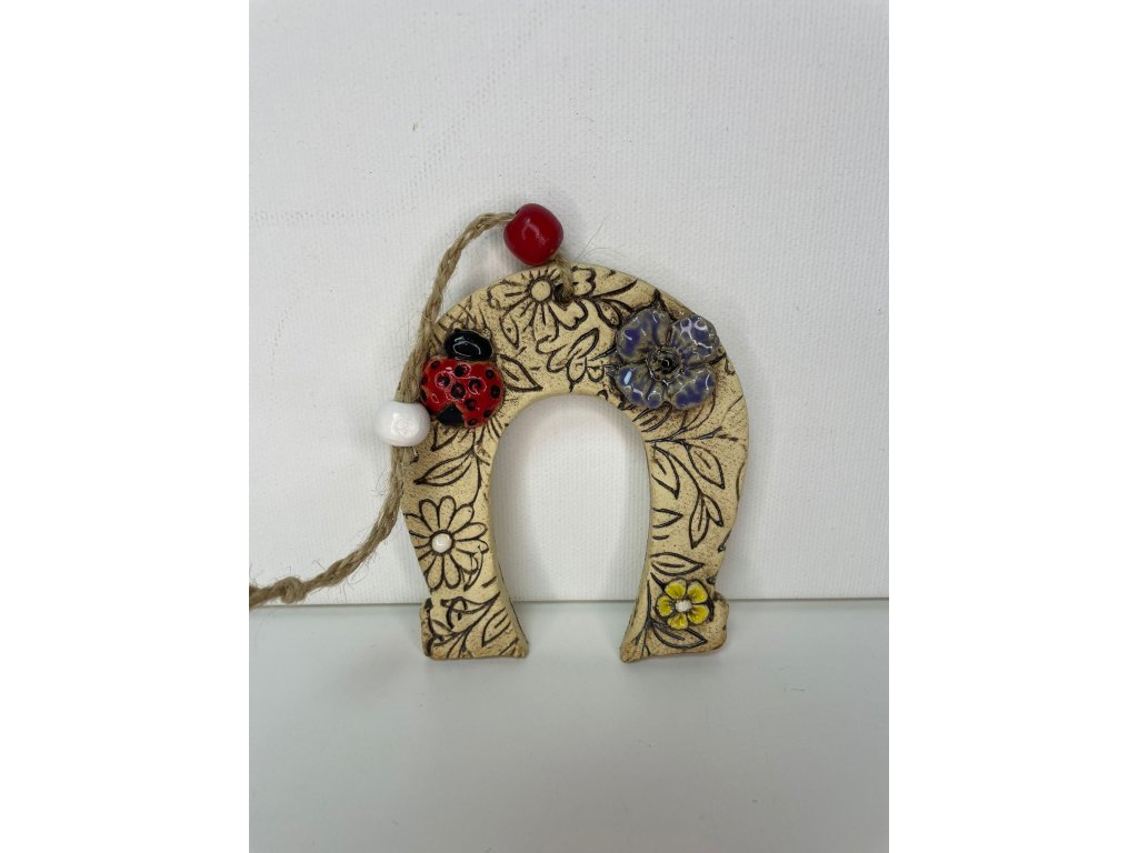 Ručně vyráběná keramická podkova pro štěstí z vypálené keramiky. Každý kus je originál, který v sobě nese kouzlo poctivé ruční práce. Krásná dekorace i milý dárek, který potěší a přinese kousek štěstí domů i na cestu životem.