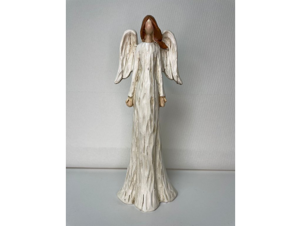 Jemný anděl v přírodních barvách, který v rukou drží srdce jako symbol lásky a ochrany. Díky menší velikosti se hodí na polici, stůl nebo jako drobná dekorace, která dodá domovu klidnou a harmonickou atmosféru.
