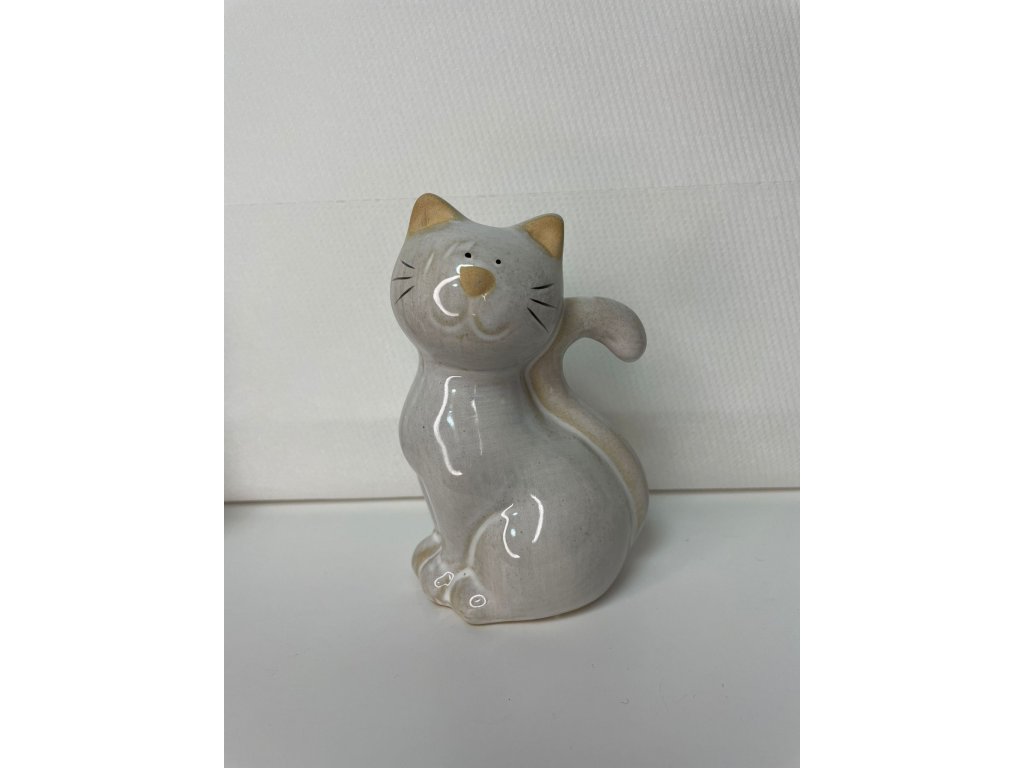🐾 Roztomilá kočička z keramiky – šedá, 12 cm