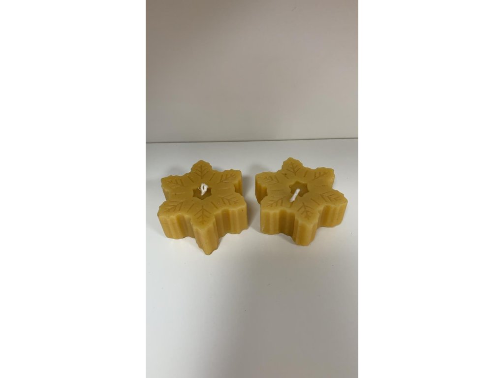 Krásná ručně vyráběná svíčka ze 100 % včelího vosku ve tvaru sněhové vločky.